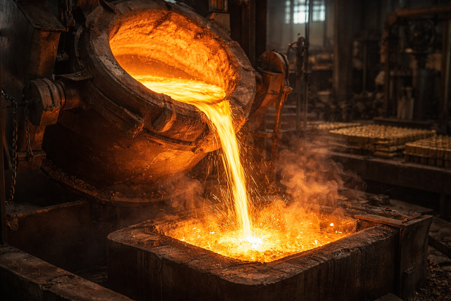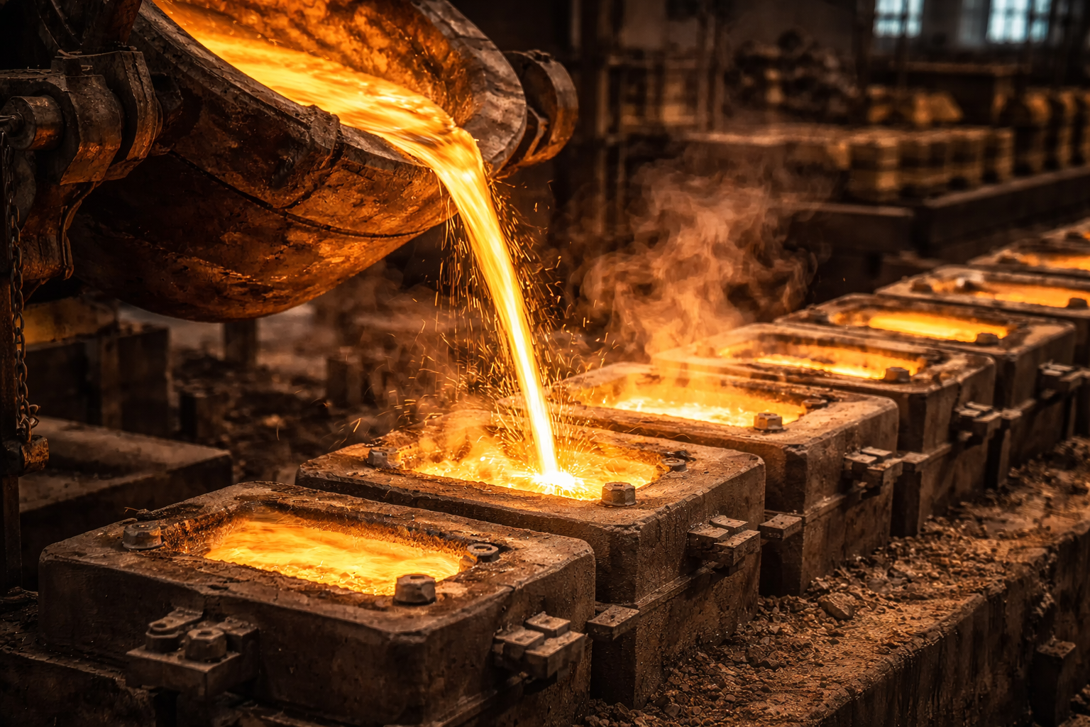 Molten brass is formed into initial shapes. Ensures uniform structure for further processing.