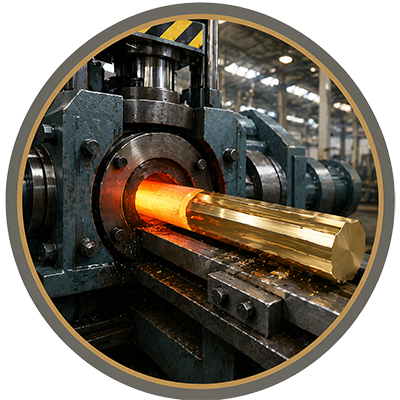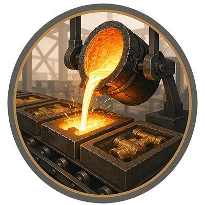 Molten brass is formed into initial shapes. Ensures uniform structure for further processing.